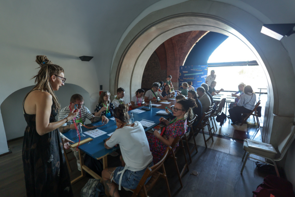 Na warsztacie ze storytellingu uczestniczki i uczestnicy doskonalili umiejętność tworzenia angażujących i ciekawych opowieści. Warsztat był szczególnie wartościowy dla osób, które w ramach wolontariatu oprowadzają po wystawach i dzielą się swoją wiedzą o eksponatach. Zajęcia pozwalały ćwiczyć kreatywność i inspirować się nawzajem.