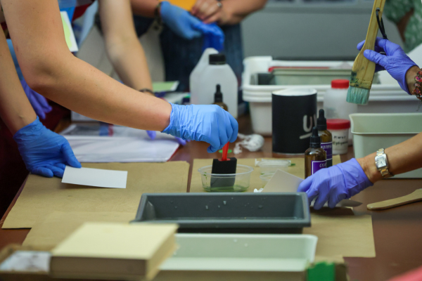 W ramach warsztatów cyjanotypii wolontariusze i wolontariuszki poznali jedną z najstarszych technik fotograficznych, wykorzystującą światło i odczynniki chemiczne. Każdy wykonał kilka fotogramów w charakterystycznym, monochromatycznym kolorze błękitu, które mógł zabrać ze sobą do domu.