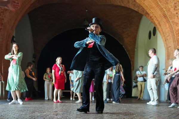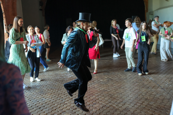 Na warsztacie z tańców dawnych uczestnicy i uczestniczki poznawali kroki i układy inspirowane historycznymi tradycjami tanecznymi. Praca w parach i grupach pozwalała rozluźnić atmosferę i lepiej się zintegrować. Taniec i towarzysząca mu muzyka pozwalały poczuć ducha dawnych epok.