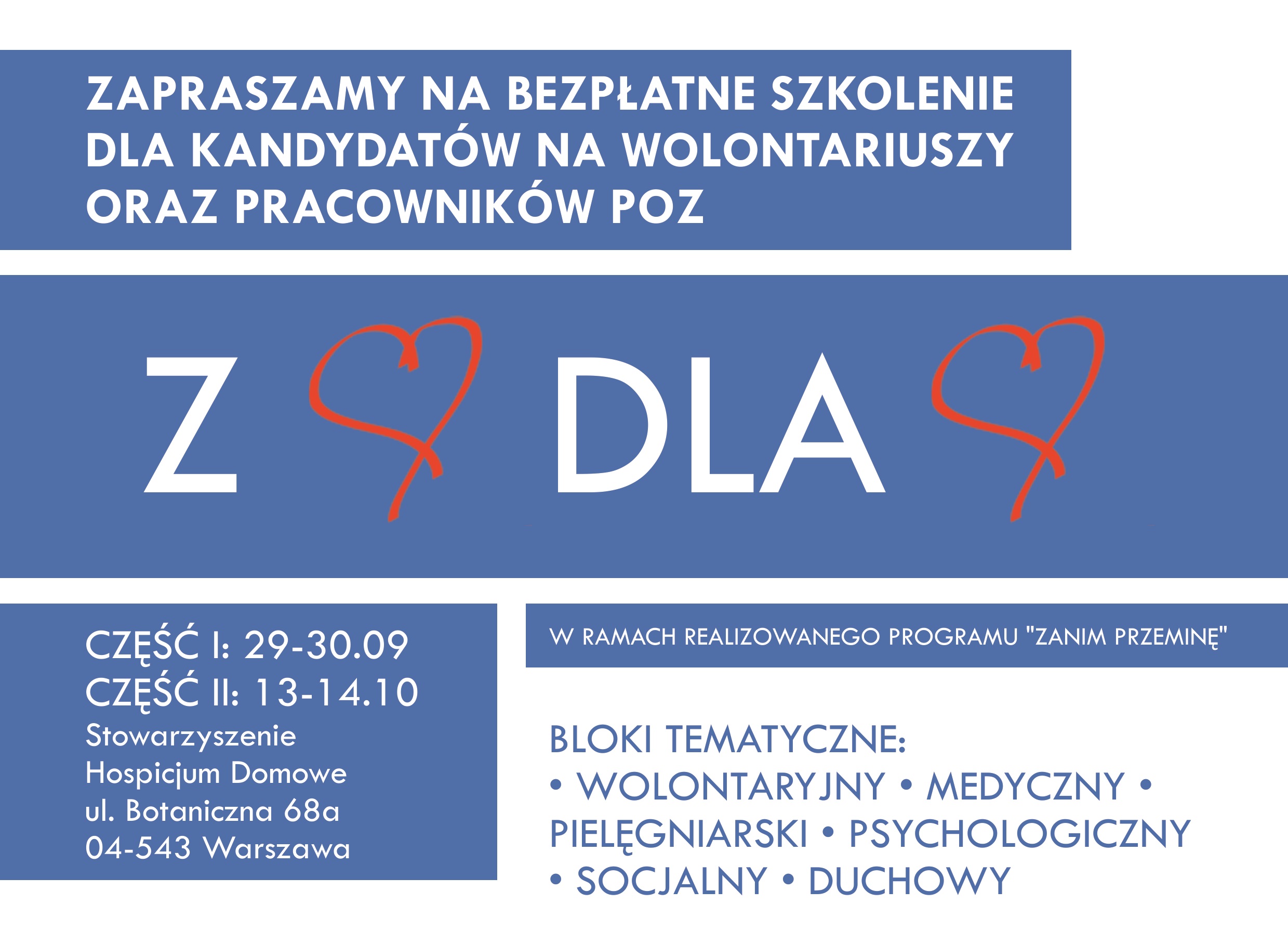 Hospicjum Domowe im. Cicely Saunders serdecznie zaprasza na szkolenie skierowane do wszystkich osób, które dostrzegają cierpienie drugiego człowieka. Przyjdź i skorzystaj z doświadczenia wysokiej klasy specjalistów, którzy na co dzień walczą o godność tych, którzy są w najtrudniejszych...