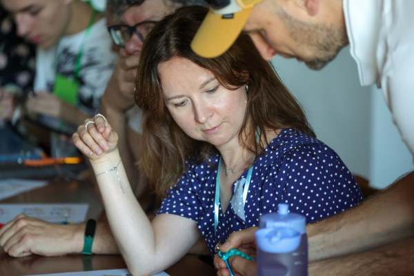 Uczestnicy musieli porozmawiać ze sobą, znaleźć osoby pasujące do opisów i wpisać ich imiona w odpowiednie pola. Ci, którzy wypełnili całą kartę, wrzucali ją do koszyka, z którego następnie wylosowano trzech zwycięzców. Zabawa nie tylko sprzyjała nawiązywaniu kontaktów, ale też pozwalała dowiedzieć się czegoś więcej o doświadczeniach i pasjach innych wolontariuszy. W przerwach uczestnicy i uczestniczki uwieczniali wspomnienia, robiąc zdjęcia polaroidem, a także sami tworzyli i ozdabiali swoje identyfikatory.