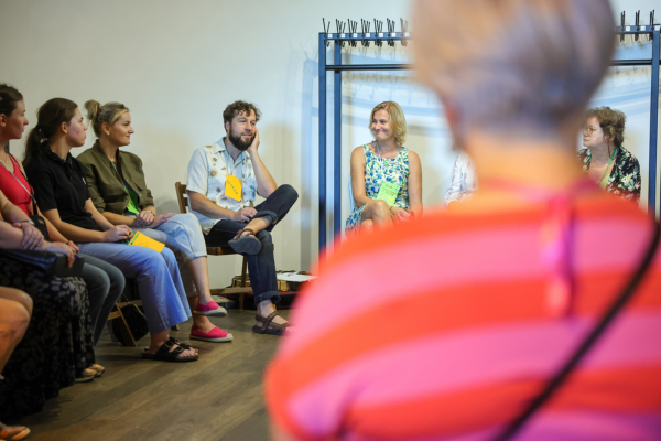 Na warsztacie ze storytellingu uczestniczki i uczestnicy doskonalili umiejętność tworzenia angażujących i ciekawych opowieści. Warsztat był szczególnie wartościowy dla osób, które w ramach wolontariatu oprowadzają po wystawach i dzielą się swoją wiedzą o eksponatach. Zajęcia pozwalały ćwiczyć kreatywność i inspirować się nawzajem.