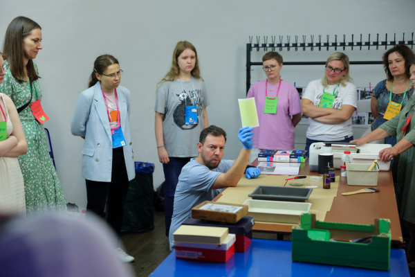 W ramach warsztatów cyjanotypii wolontariusze i wolontariuszki poznali jedną z najstarszych technik fotograficznych, wykorzystującą światło i odczynniki chemiczne. Każdy wykonał kilka fotogramów w charakterystycznym, monochromatycznym kolorze błękitu, które mógł zabrać ze sobą do domu.